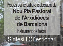 A nivel diocesano hemos tenido diversos planes pastorales, los últimos solían ser trianuales. Ahora, con el arzobispo Juan José Omella que ya lleva más de un año entre nosotros (inició su ministerio a finales del 2015) se quiere confeccionar un nuevo plan pastoral pero para ello nuestro pastor quiere contar con la colaboración de todos aquellos feligreses que deseen aportar sus ideas. Por esta razón, a distintos niveles se harán reuniones para confeccionar propuestas a partir de un material, del conjunto de las cuales tendrá que salir el plan pastoral. Estos diversos niveles pueden ser parroquias, comunidades religiosas, institutos seculares, movimientos, instituciones educativas y pastorales.